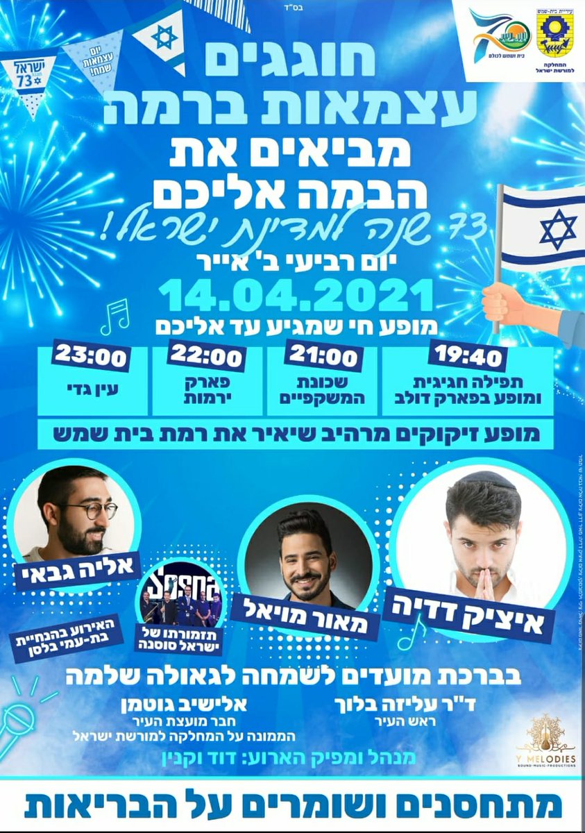 עם זאת, פחות משבועיים למועד, וברוב העיריות לא חשוב להדגיש שביום העצמאות לא יתאפשרו אירועי ענק. אי קבלת קהל בתאריך 12.4.2021 עקב אירועי יום העצמאות. שרים עצמאות עם יוסי לב וזמרים אורחים: 04.04.2021הרשמה לטקס יום הזיכרון לחללי פעולות האיבה תשפא. ברוכים הבאים לעמוד של מופעי יום העצמאות 2021 באתר קצת תרבות.